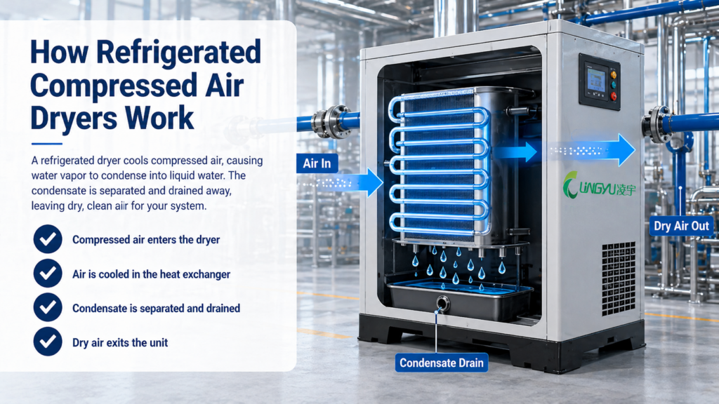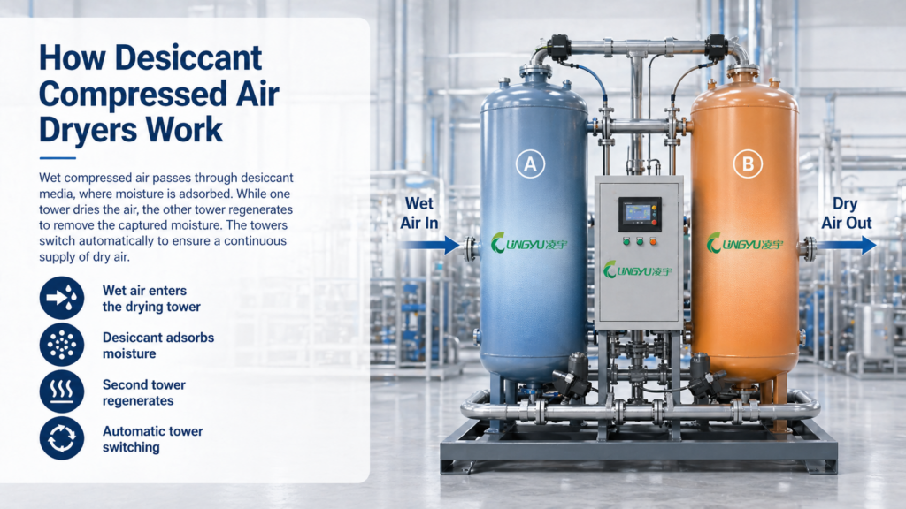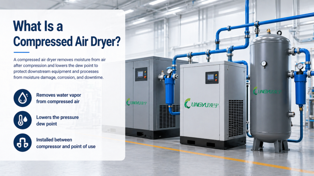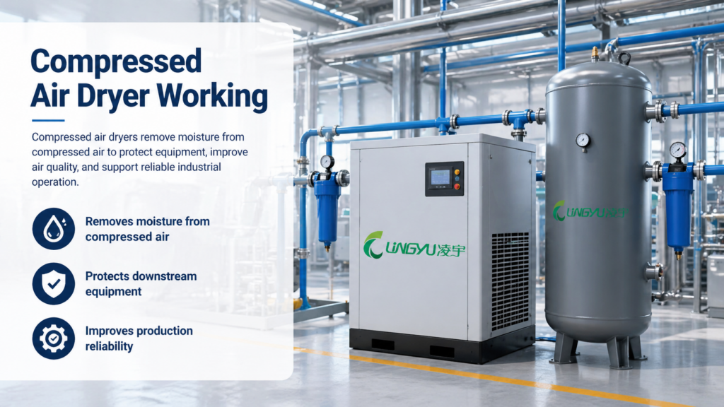 Understanding compressed air dryer working is important because air quality has a direct impact on industrial performance. A dryer is not just an accessory added to the system. It is a critical protection device that helps maintain production stability.