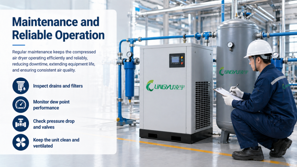 Consistent maintenance helps prevent unexpected shutdowns and keeps the compressed air dryer working efficiently over the long term.
