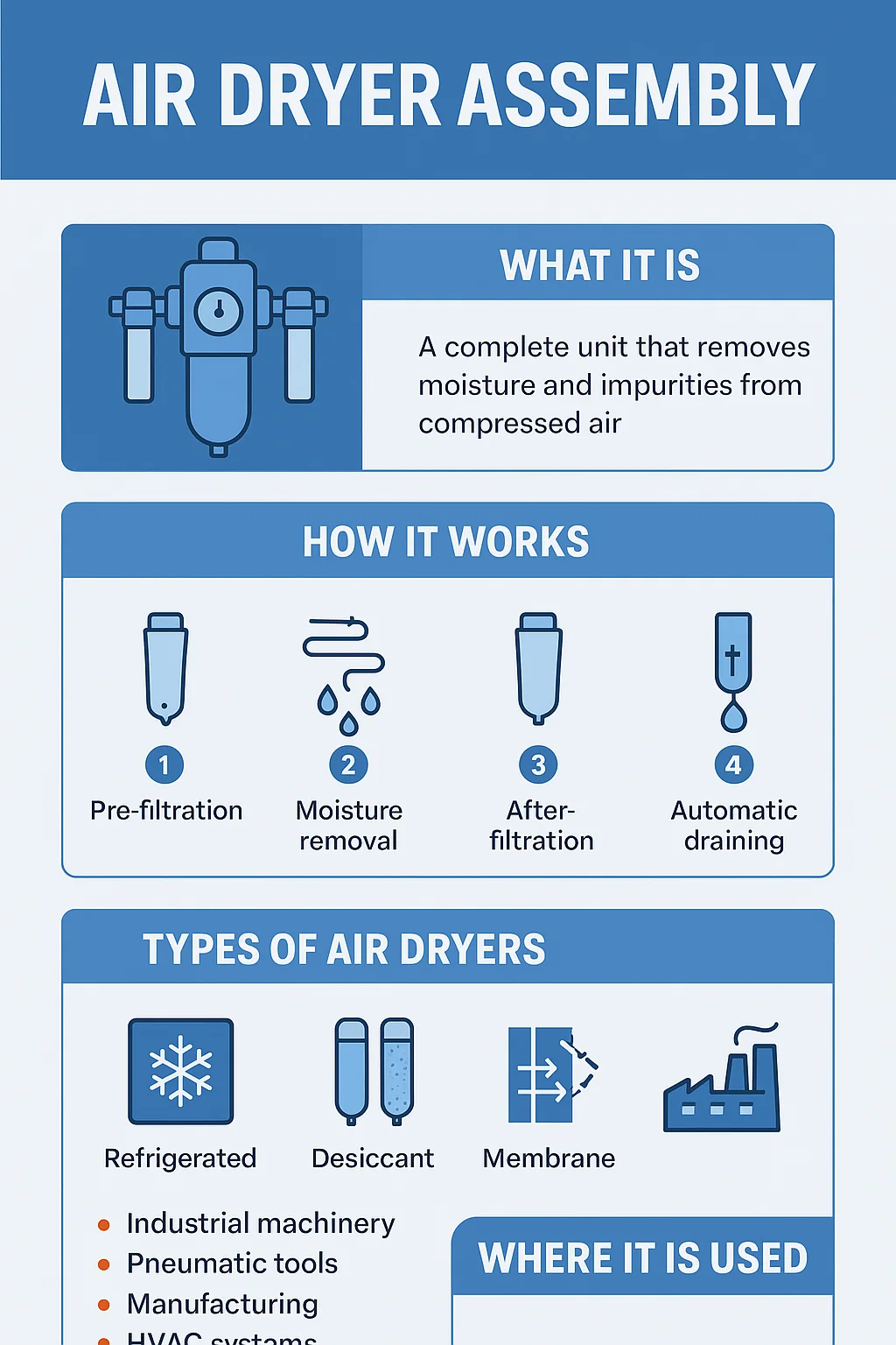 The DC Series Combined Compressed Air Dryer is designed for reliable drying of compressed air with high-performance activated alumina adsorbents. Beyond the technical data—including inlet pressure, temperature, regeneration method, and capacity—users often seek practical guidance on selection, applications, maintenance, and operational optimization.