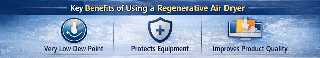 A regenerative compressed air dryer offers several important advantages for industrial users, especially in demanding operating conditions.